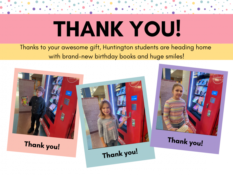 Thank you to our generous donors who helped turn Huntington student birthdays into "BOOK DAYS"!!!!!! We appreciate you more than you know!!